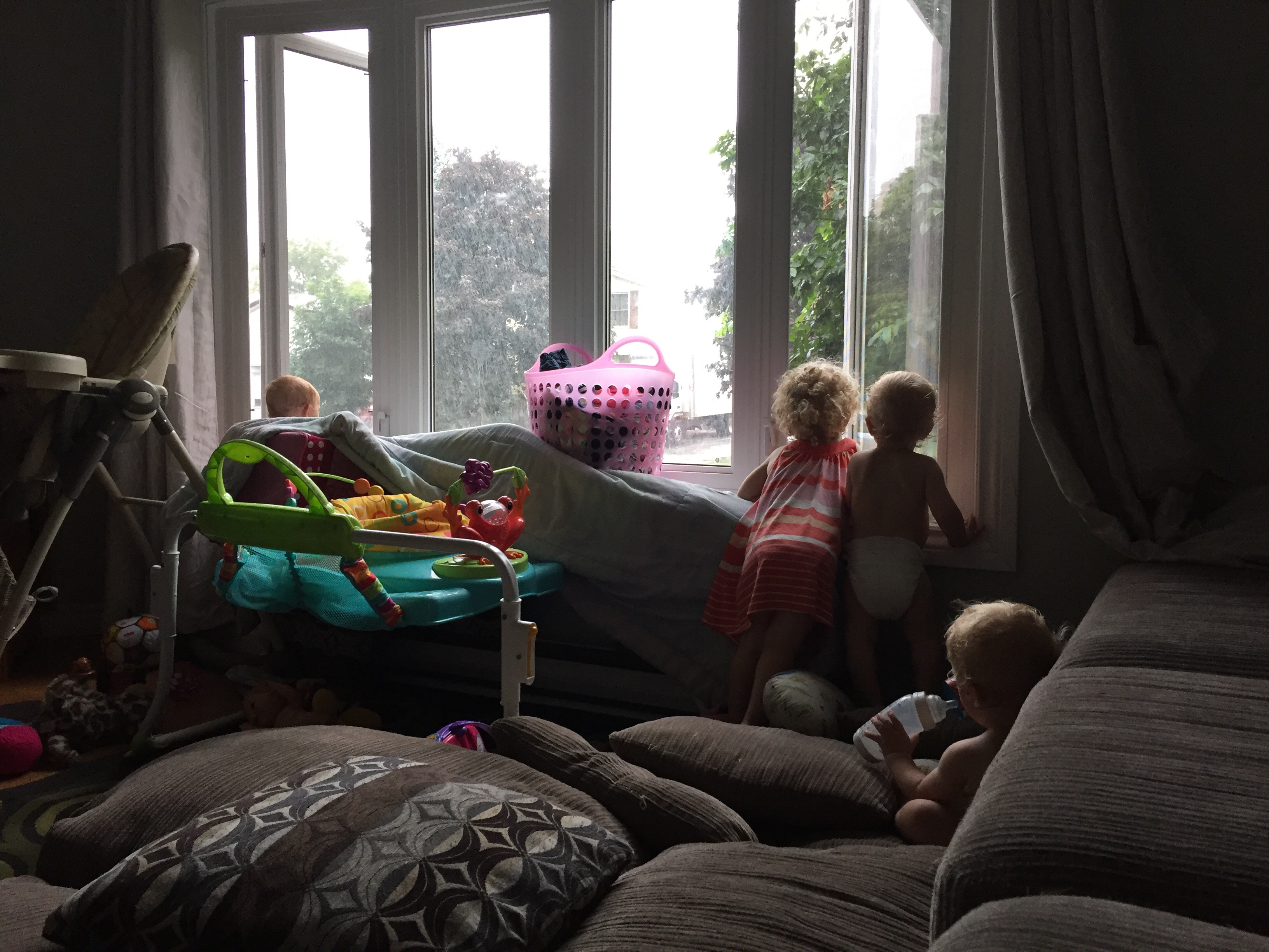 Toys are everywhere and although there is a ratio of 20:1 toys per baby, they are still fighting over the same toy or wanting to play with the converter. On top of all of this, we don’t have air conditioning and it feels like it is 40 degrees in our house. Everyone is sweating and sticky from running around and I don’t know if it’s better to be outside in the heat with some wind, or inside out of the heat. What I do know, is that everyone is having a great time and they are happy.
