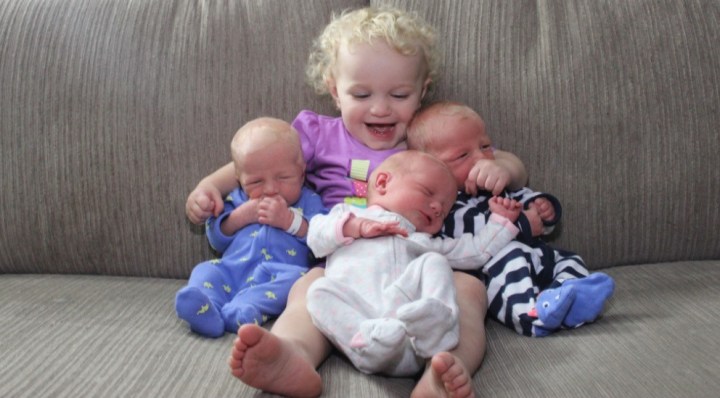 nursing pillow designed for twins. I used my regular nursing pillow with the triplets and I found it was difficult to keep them in position as they got older and bigger. From what I have seen they look to be larger and have a flat top, which would be very helpful when positioning one baby and then reaching for the second one. There was a couple of times I remember one of the triplets rolling off the pillow onto the couch or bed! Here is one I found called My Brest Friend® Twin & Plus Size Nursing Pillow in Fireworks from BedBath & Beyond, but I’m sure you could find them other places as well.